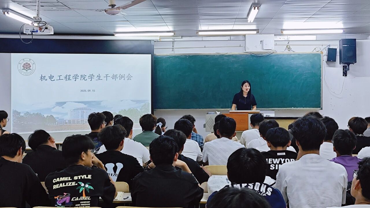 为进一步强化学生干部队伍建设,明确新学期学生工作方向,9月15日,QY球友会体育于机电楼416教室召开新学期学生干部例会,学院党委副书记陈凌云,学生工作办公室副主任赵相博,团委副书记邬瑜锦,辅导员崔鲁杰、马宗良、张鑫参加会议。