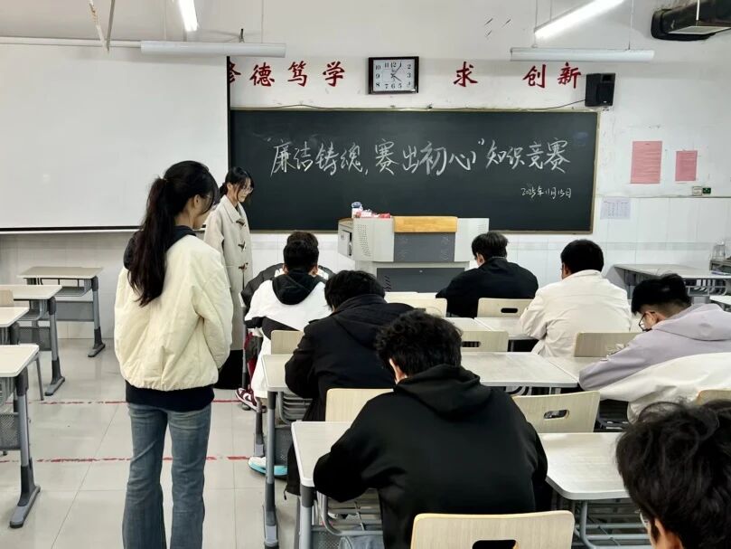 11月15日,学院组织部联合物理与电子工程学院组织部开展了“廉洁铸魂,赛出初心”知识竞赛。竞赛过程中,参赛选手认真作答、积极思考,在答题中深化了“知廉、懂廉、守廉”的价值观念。在比拼中感悟廉洁责任,激发了同学们未来廉洁从业、服务社会的内在自觉。