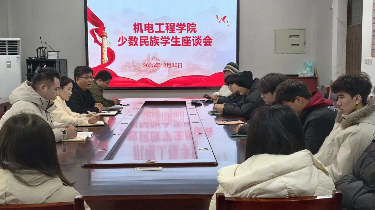 为深入了解少数民族学生在校学习与生活情况,畅通交流渠道,营造团结友爱、互助共进的集体氛围,2025年12月30日,QY球友会体育于机电楼406会议室召开少数民族学生座谈会,学院党委副书记陈凌云,副院长李忠广,学生工作办公室副主任赵相博,辅导员马宗良参加会议。